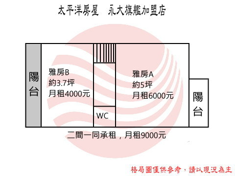 與房東同住,前後雅房可一同承租"