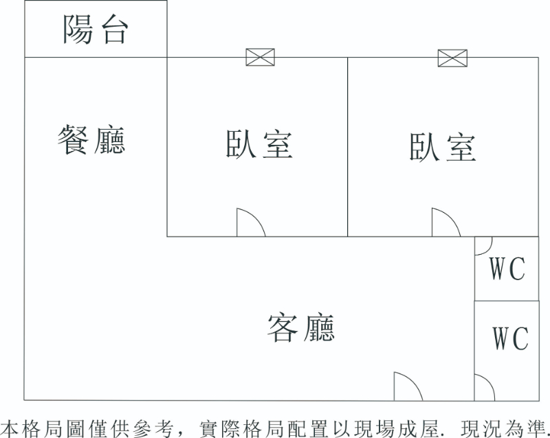 2房/ 2廳/ 2衛/ 1陽台
